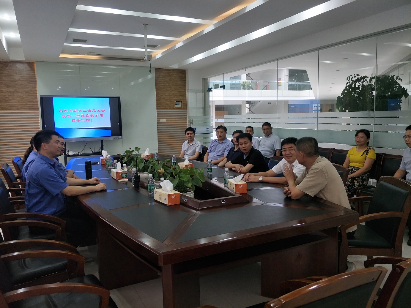 周主席一行來到我公司后,先在陳育亮主席的陪同下參觀了工會(huì)活動(dòng)室,隨后在會(huì)議室進(jìn)行了座談。座談中,陳主席向來訪領(lǐng)導(dǎo)詳細(xì)匯報(bào)了公司的基本情況,對公司的生產(chǎn)、生活、安全、環(huán)保等工作做了介紹,對公司工會(huì)開展的一系列活動(dòng)、現(xiàn)有的勞資情況、員工待遇、福利等一一做了說明。周主席聽完匯報(bào)后,對公司工會(huì)工作表示了肯定,他要求工會(huì)要做好企業(yè)的服務(wù)工作,使企業(yè)的勞資關(guān)系更和諧,日常可以多舉行一些活動(dòng),多開拓一些員工交流的渠道,使廣大職工切實(shí)感受到工會(huì)組織的溫暖。最后周主席強(qiáng)調(diào),工會(huì)組織要講政治、跟黨走;講服務(wù)、為職工;辦實(shí)事、有效果;講規(guī)矩、要規(guī)范;有擔(dān)當(dāng)、勇創(chuàng)新,為職工服務(wù)也是為人民服務(wù)的一部分,工會(huì)要在維護(hù)大局、服務(wù)中心工作中,大有作為、大有可為、大有該為。