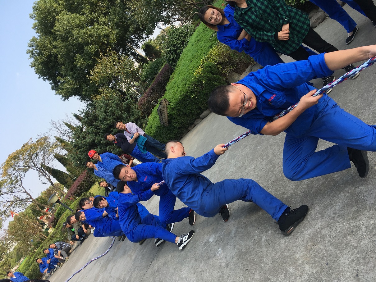 當比賽的哨聲響起,隊員們口中一起高呼著“一二,一二”, 雙手緊握長繩,拼命往后拉!公司領導也在隊伍旁邊助陣加油,未參賽的員工自發組成啦啦隊為比賽隊員吶喊加油,號子聲、吶喊聲,充斥在公司上空,形成了一派熱火朝天的比賽氛圍。