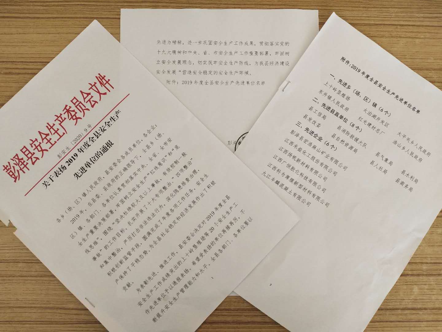 2020年6月10日,江西揚帆新材料有限公司被授予2019年度全縣安全生產先進企業,受到彭澤縣安全生產委員會通報表揚。