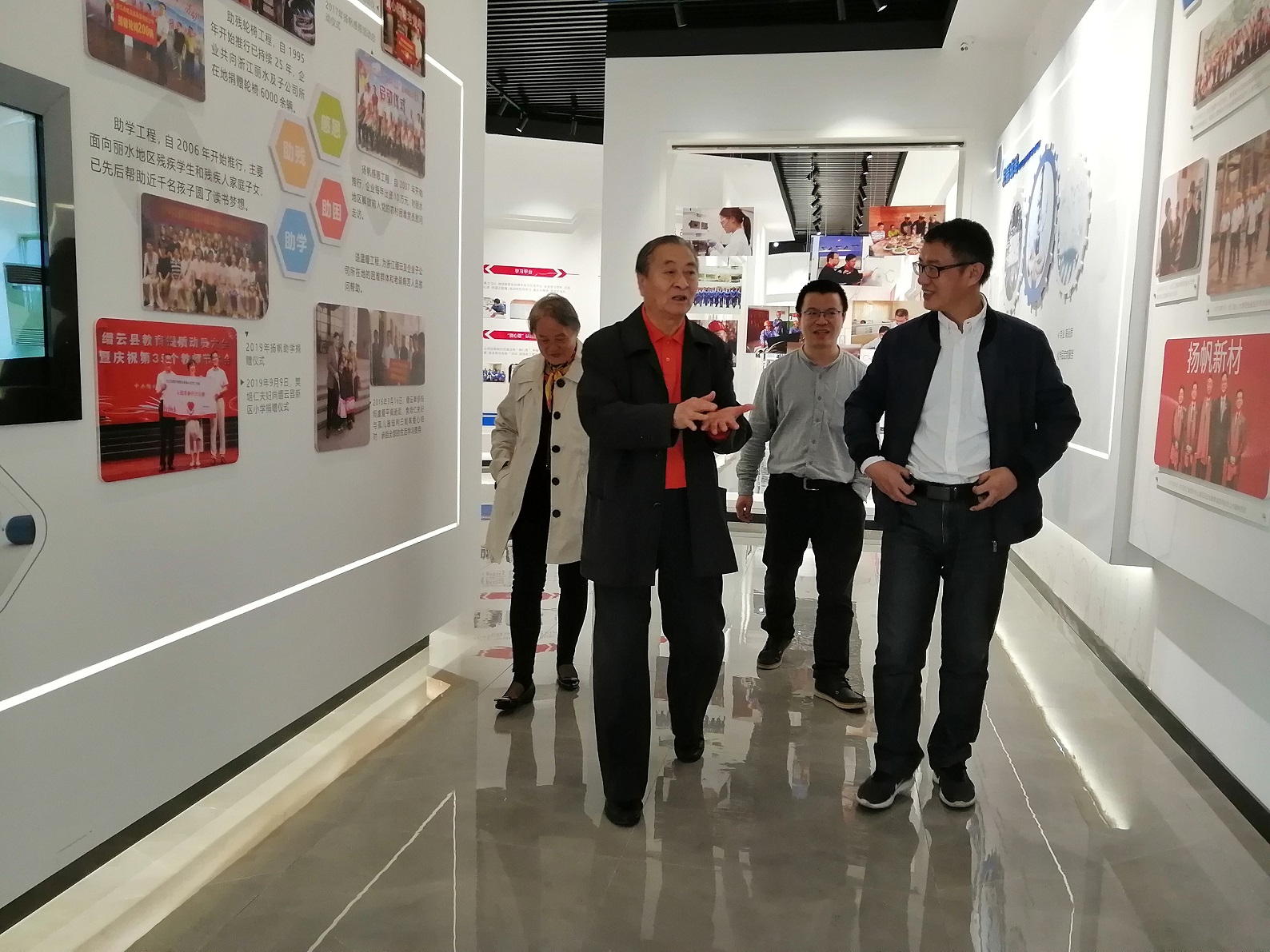 上午,金教授在樊董的陪同下參觀了上虞生產基地廠區、企業發展(產品)展示廳和黨建展廳及研發大樓實驗室。