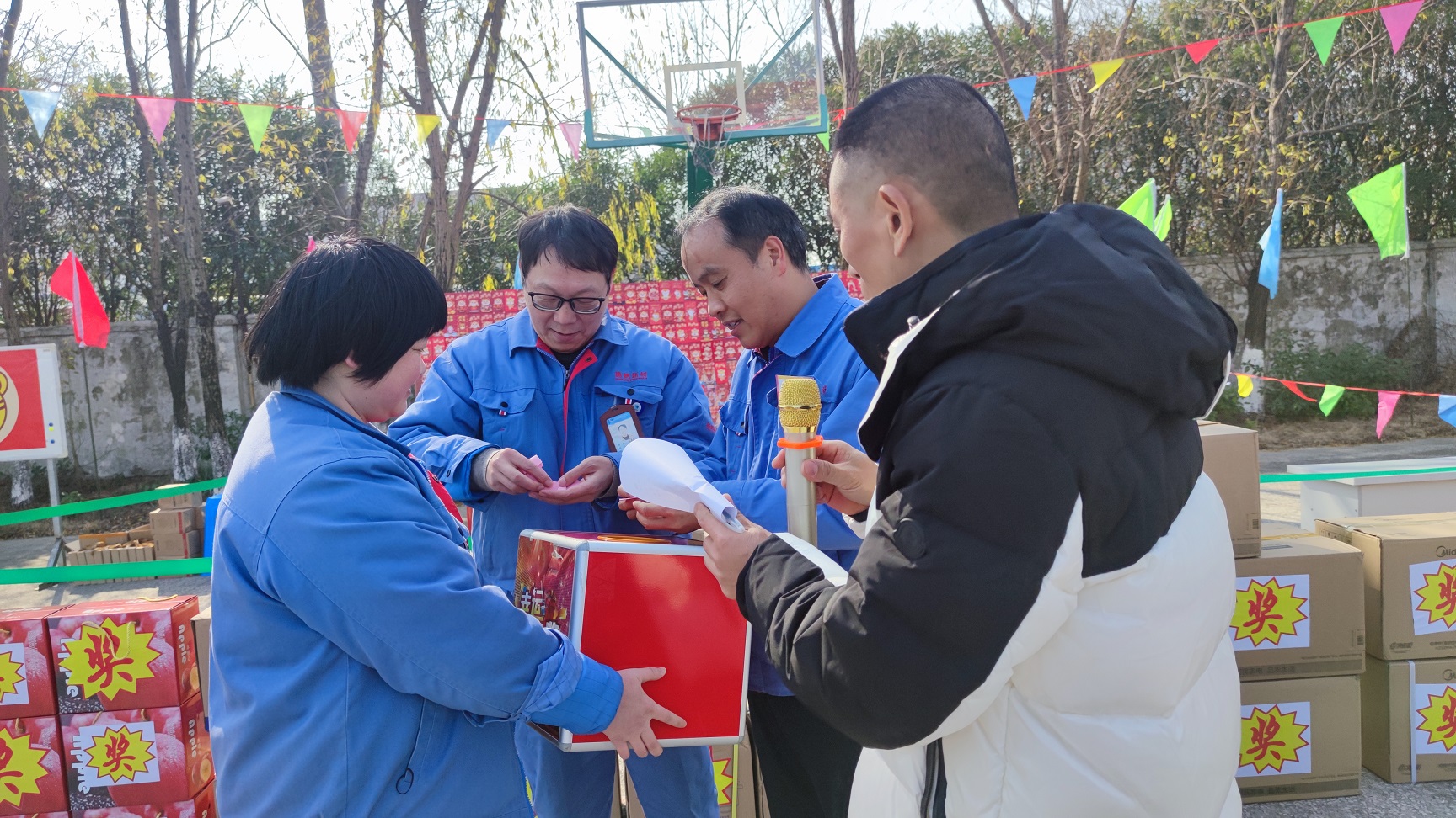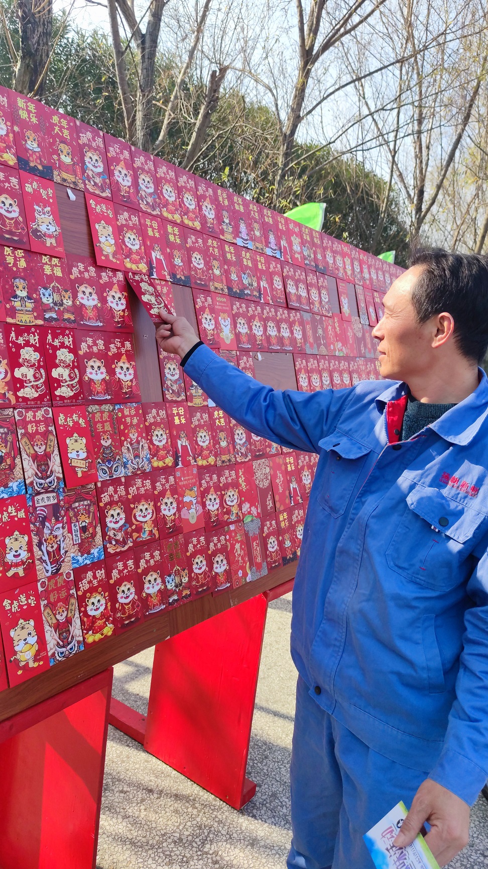紅包墻是今天籃球場上最耀眼的道具,400個虎年卡通紅包組成的紅包墻,金光閃閃、虎虎生威,看著就充滿喜悅。此次紅包兌換確保人人有份,紅包兌換不限時間,隨到隨兌,未知的幸運讓每一個紅包都承載了不一樣地快樂,如同抽盲盒一般,時不時地聽到歡呼,那是誰又中了大獎啦。