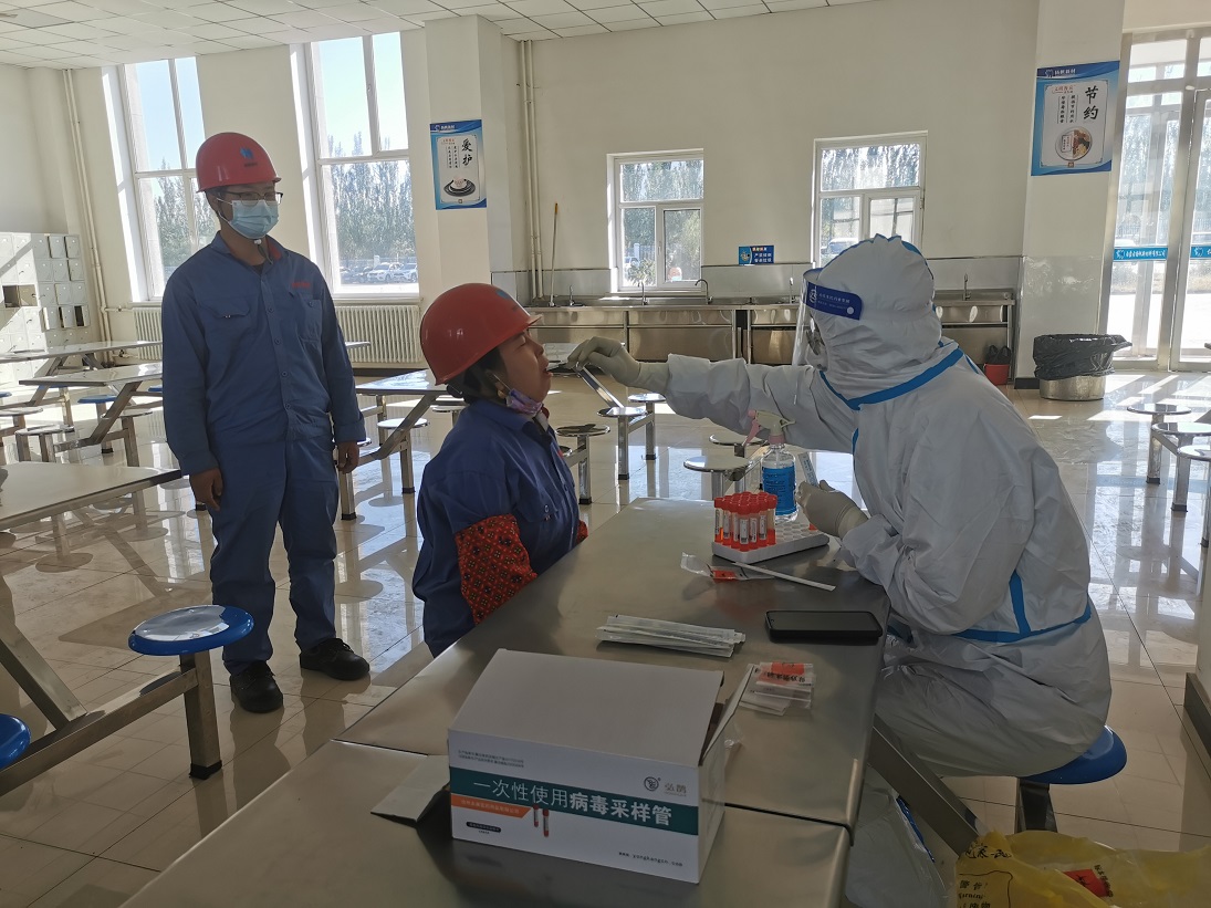 108日,根據阿拉善盟阿拉善高新技術產業開發區疫情防控部署最新要求,印發《內蒙古揚帆新材料有限公司進一步加強新冠肺炎疫情防控工作要求》;建立疫情防控定期檢查工作機制,定期排查重點返回人員,確保外來人員溯源信息“零疏漏”,緊盯疫情防控重點區域、重點環節等風險點,開展監督檢查,確保疫情防控“零死角”;積極配合政府開展核酸檢測工作,1010日,按照相關要求,公司聯系醫護人員到工廠開展全體職工集中核酸檢測工作,核酸采樣前,做到了提前通知,安排到位。采樣過程中,全體職工自覺遵守防控要求,有序排隊,掃健康碼,10人一組,等候檢測。醫護人員逐一為職工做咽拭子采樣,相關工作人員在現場維護秩序,登記、核對信息,整個過程井然有序,采樣流程快速高效,1小時完成全體職工采樣工作。